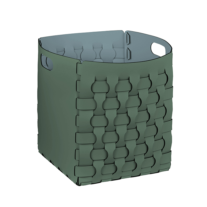 Корзинка имеет уютный, нежный цвет эвкалипта, который гармонично сочетается с небесным оттенком, создавая утончённый акцент в любом помещении. Легкий и практичный дизайн позволяет ей легко вписаться в разнообразные интерьерные стили — от скандинавского до современного минимализма.