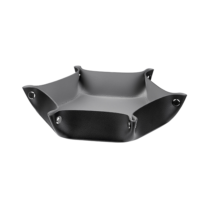Мелочница представлена в элегантных черно-серых тонах, которые легко впишутся в любой интерьер, добавляя ему современного и строгого стиля. Её компактный размер позволяет удобно разместить её на столе, полке или в ящике, а продуманный дизайн обеспечивает легкий доступ к необходимым предметам.