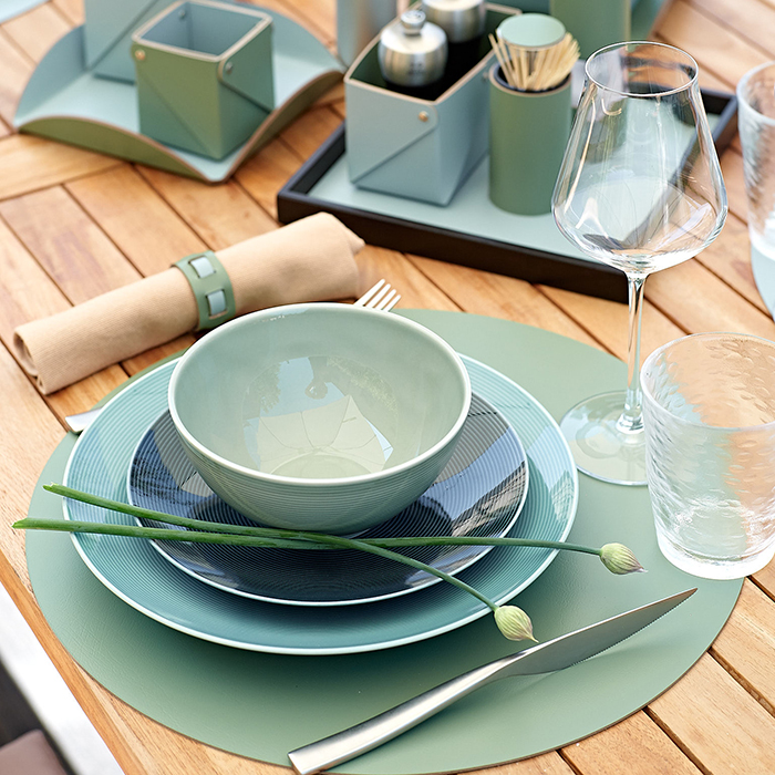Создайте уютную атмосферу на вашем столе с элегантным круглыми плейсматами ADJ. С диаметром 40 см и стильным сочетанием небесного и эвкалиптового цветов, этот плейсмат станет идеальным акцентом для любого оформления стола.