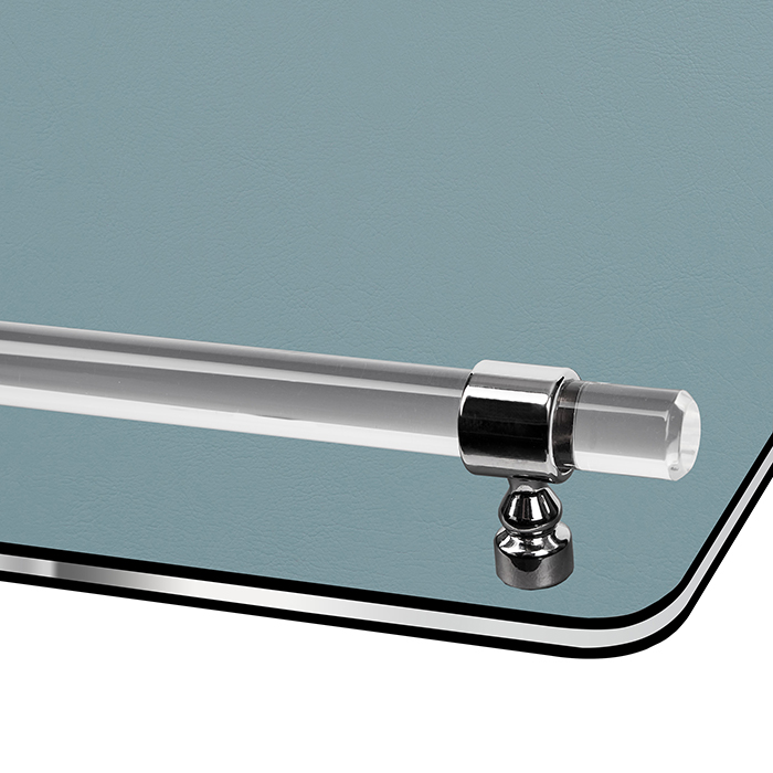 Изготовленный из качественных материалов, поднос окрашен в нежный небесный цвет, который гармонично сочетается с элегантными элементами из эвкалипта. Контрастная графитовая фурнитура добавляет современный акцент и подчеркивает утонченный дизайн изделия.
