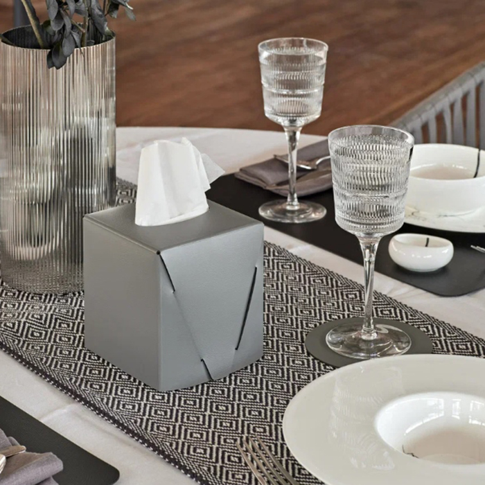 Салфетница ADJ Kleenex – стильный и практичный аксессуар для вашего стола! Размеры 12x12xH12 см делают её компактной, а современный цветовой вариант в сером и черном идеально впишется в любой интерьер — от минимализма до классики.