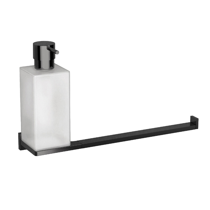 - Colombo Look Дозатор для жидкого мыла с полотенцедержателем, подвесной, цвет: PVD графит полированный/матовое стекло