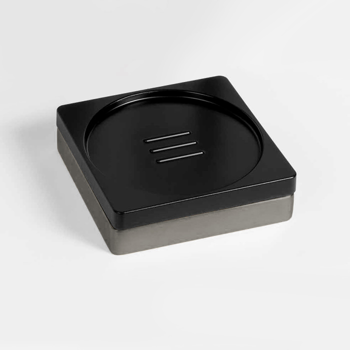 Изготовленная из высококачественной PVD нержавеющей стали с изысканной черной резиной, мыльница не только долговечна, но и устойчива к коррозии, что гарантирует долговечность на долгие годы. Эстетика металлической поверхности в сочетании с мягкостью резины создает гармоничное визуальное впечатление, которое прекрасно впишется в любой интерьер — от минималистичного до классического.
