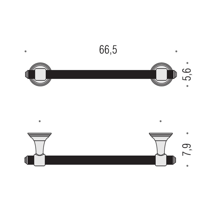 Особенности: - Долговечность: Изготовлен из высококачественных материалов, стойких к коррозии и механическим повреждениям. - Стильный дизайн: Хромированная поверхность блестит и привлекает внимание, идеально вписываясь в любой современный интерьер. - Удобство использования: Длина 66,5 см позволяет разместить несколько полотенец, обеспечивая легкий доступ к ним. - Легкость установки: Держатель легко монтируется на стену, что экономит пространство и придаёт аккуратный вид.