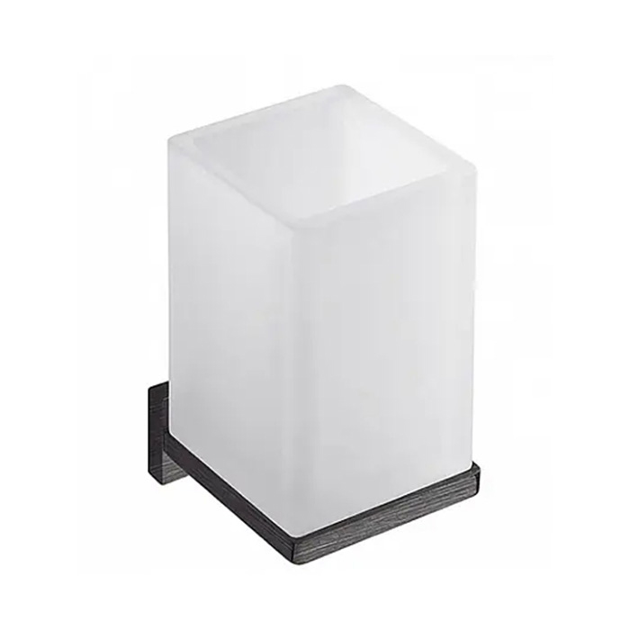 Матовое стекло прекрасно дополняет общий дизайн изделия, создавая гармоничный контраст с металлическими элементами. Подвесная конструкция позволяет удобно разместить стакан в ванной комнате или на кухне, освобождая пространство на столешнице.